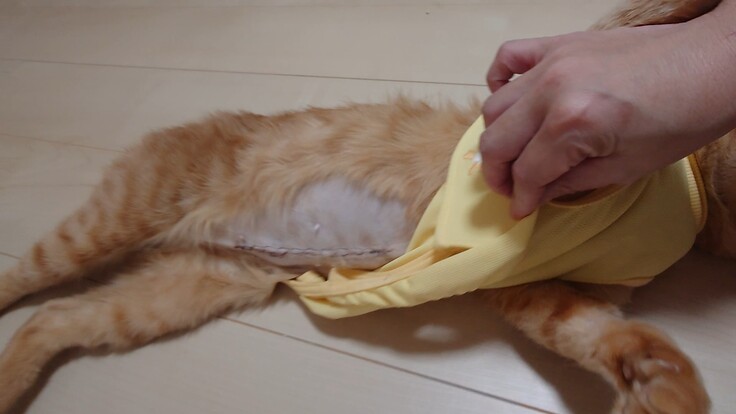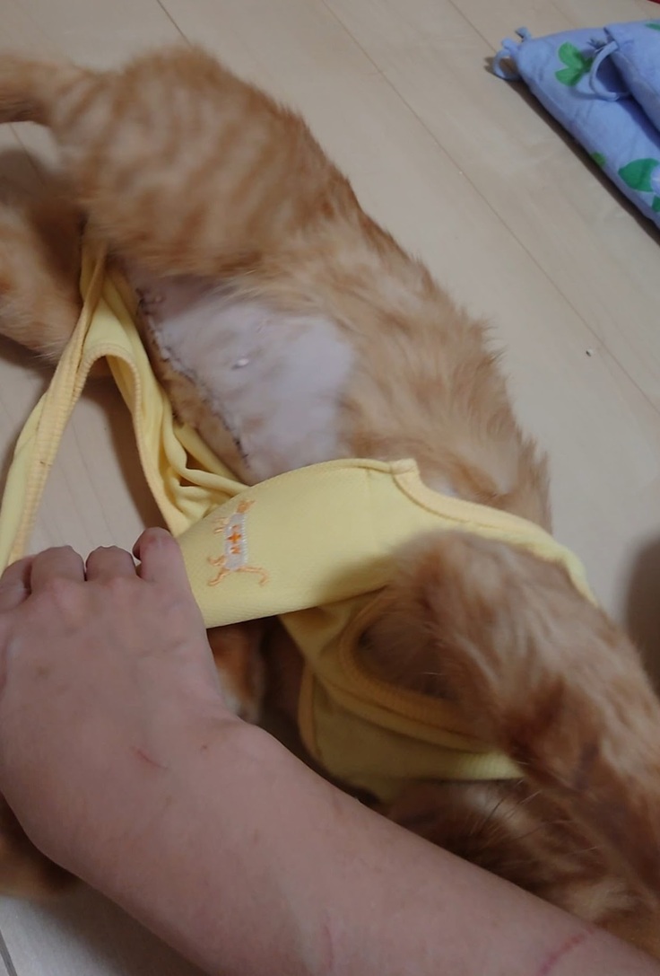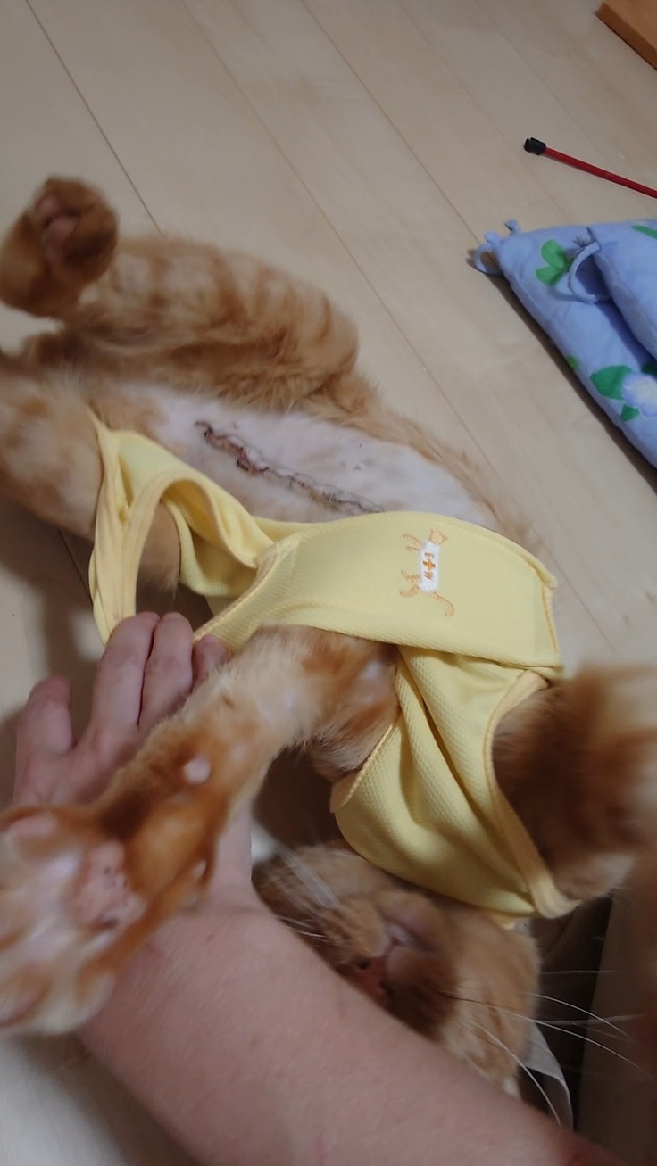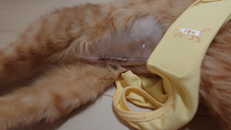 🐈ガッツリお腹を切られているヨッちゃん。