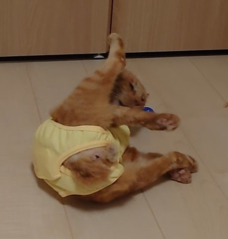 🐈足だけ服を脱がされ、びんぼっちゃまくんスタイルのヨッちゃん🐈