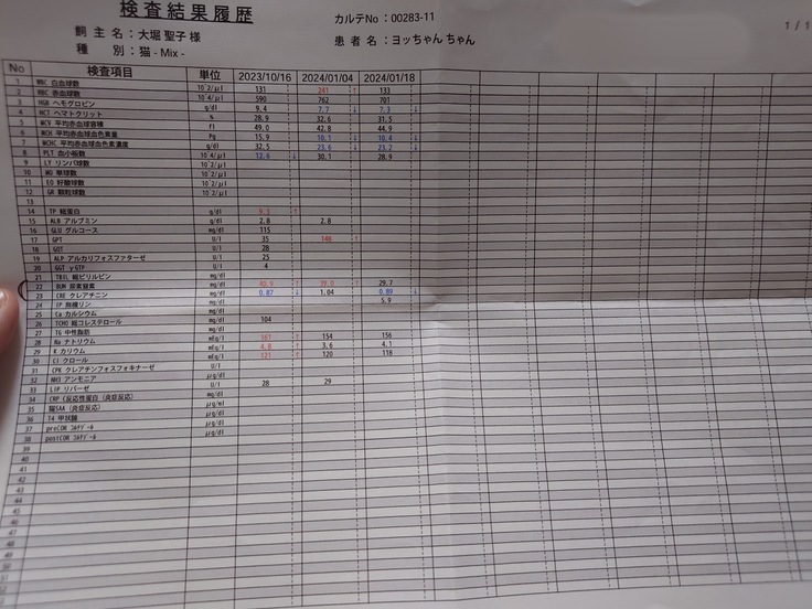 🐈血液検査も白血球の数値が下がっていて、腎臓の数値も悪くなくてこちらも一安心の結果でした。🐈
