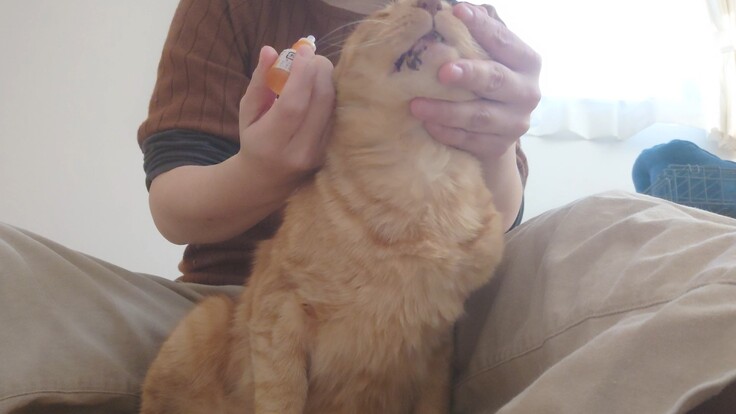 ヨッちゃん、もう1回。右目も目薬やらせて。🐈