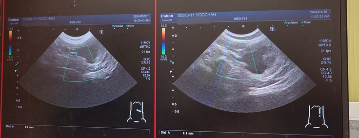 画像の右側が前回のエコーで、左側が今回のエコー。