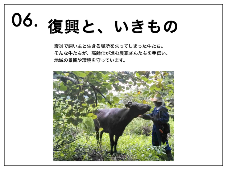 6. 震災を生き延びた牛達と共に。持続可能なエコ草刈りで地域を守る