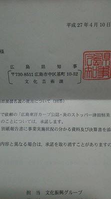 広島県知事の決裁により、広島県の後援を頂く事にもなりました。