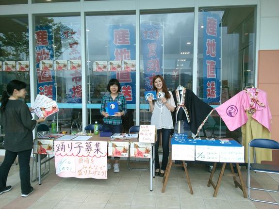 受付方法の見直しや受付会の開催などを実行委員で検討しつつ、口コミでの踊り子募集を続けてきました。地元のスーパーさんでは入口付近をお借りして、チラシを配布したり、受付説明会を実施。