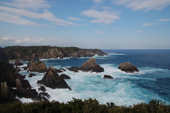 切り立った巨岩が海面から突き出し、波がぶつかり砕け散る様子は荒々しさを感じます。この近くで1890年に発生したオスマン帝国(現在、一部はトルコ)の軍艦エルトゥールル号遭難事件での串本の人々の救助活動が、我が国とトルコの友好のきっかけともなったと言われています。そして、約100年後の1985年のイラン・イラク戦争時に、自衛隊の海外派遣ができなかった我が国の代わりに、トルコは自国民に優先して、イラン在住の日本国民を救援機で救出しました。