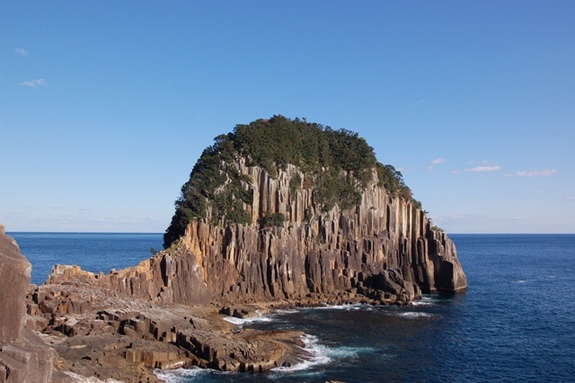 高さ約80m、周囲約550mの巨大な岩壁。三重県の名勝及び天然記念物に指定されています。神武天皇の東征の上陸地とも言われているそうです。熊野灘にそびえ立つ圧巻の岩壁です。
