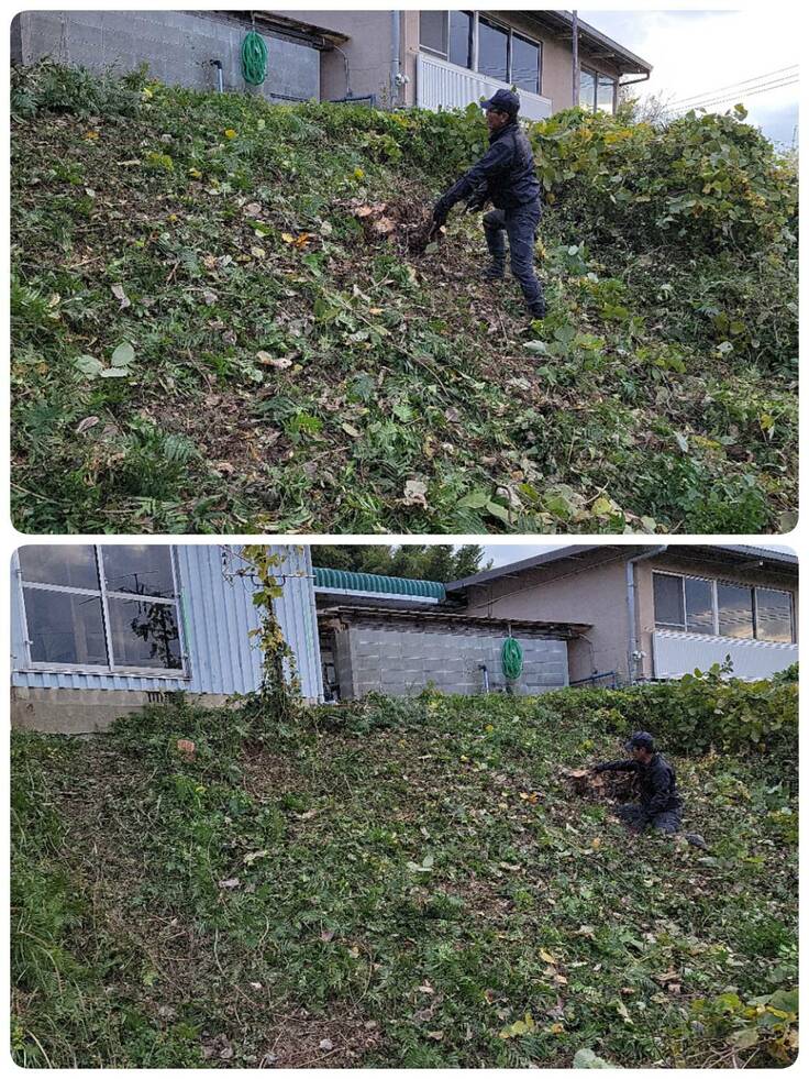 キャンプ場から館内トイレへアクセスするための階段を作る場所に蔓延る雑草の処分を行いました。