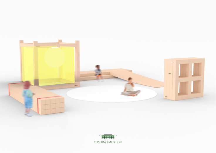 ►貯木の空き地をコンセプトに作っていて、既存の遊具のように、遊び方を矯正しないようなデザインになっています。