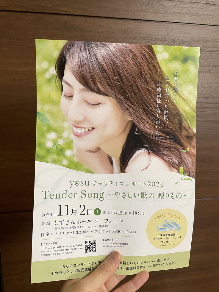 yosuチャリティコンサート2024のチラシ(A4サイズ)をご自身のお店などで宣伝してくださるスーパーマンを募集します。