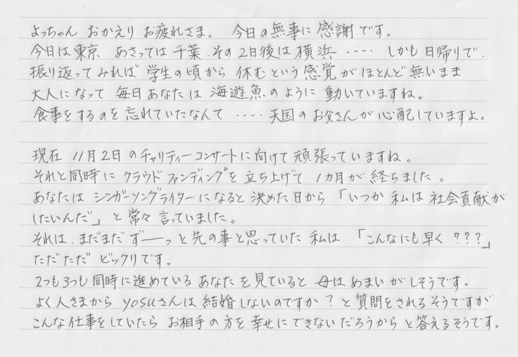 父にできなかったことも、母に全部恩返ししていこうと思い、あの日からずっと生きています。