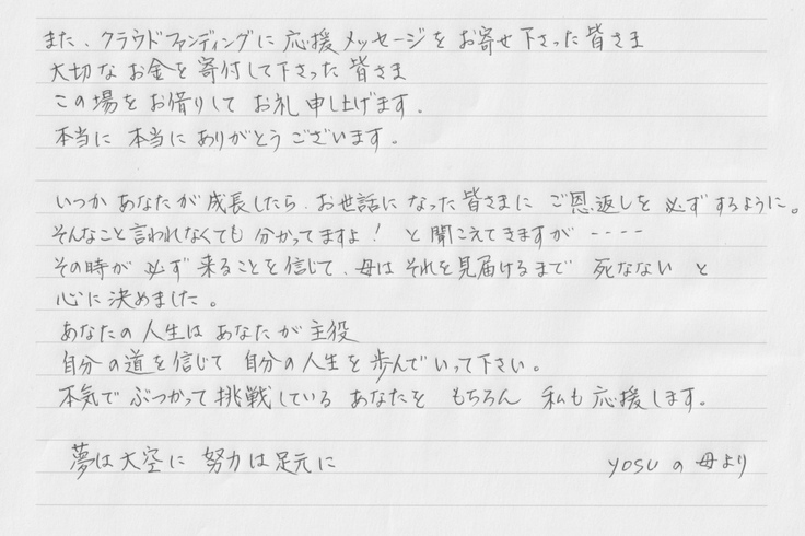 ●yosuよりお礼のメールを送りします。