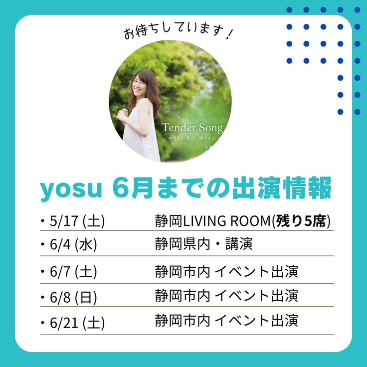 この2公演の時はどちらともyosuソロでしたが、もちろんyosuソロでも、さまざまな場所で歌わせていただけるよう今年度も全力前進です。