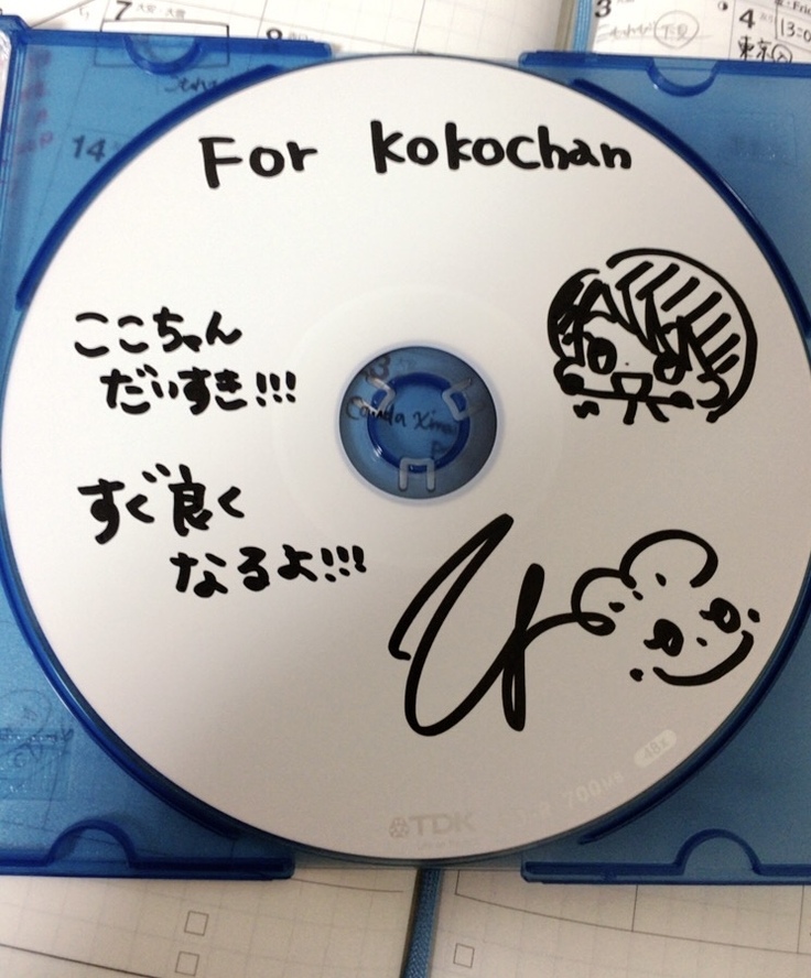 ここちゃんを励ましたくて、ここちゃんが好きだと言ってくれるyosuの曲を、ここちゃんだけに向けたメッセージを吹き込んで、CDを作ってみた。