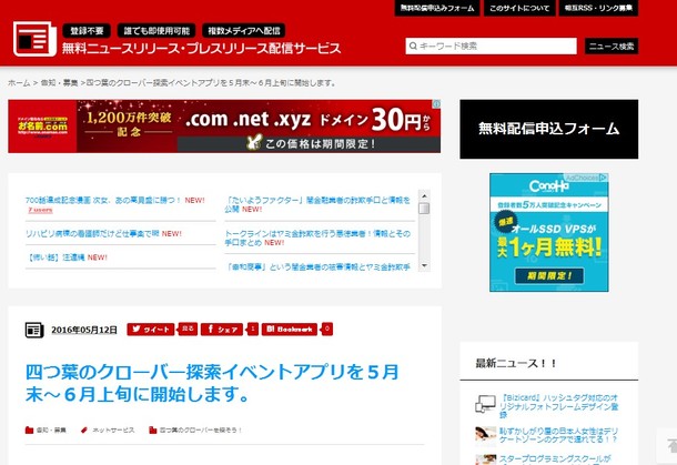 無料ニュースリリース・プレスリリース配信サービス様にて^^
