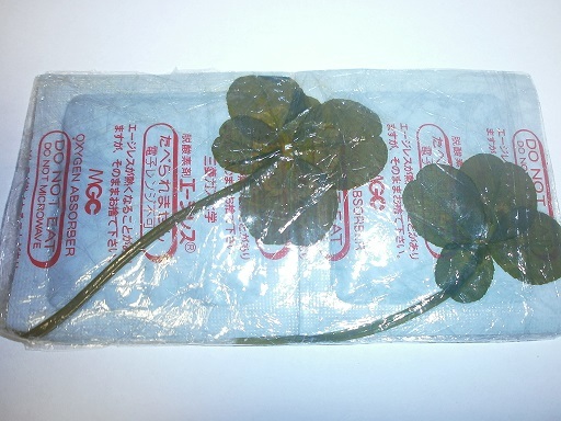 ・四つ葉のクローバーを3枚真空パックしたもの。