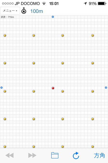 この画像の場合、1マスの1辺が「100m」です。