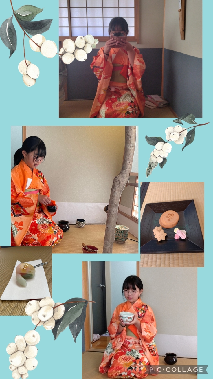 初めに私が点てた濃茶を喫し、その後、薄茶を点てました。宝尽しの平棗で右手のひと手間の扱いが入りますが、一度の説明で理解し滑らかにできました😊