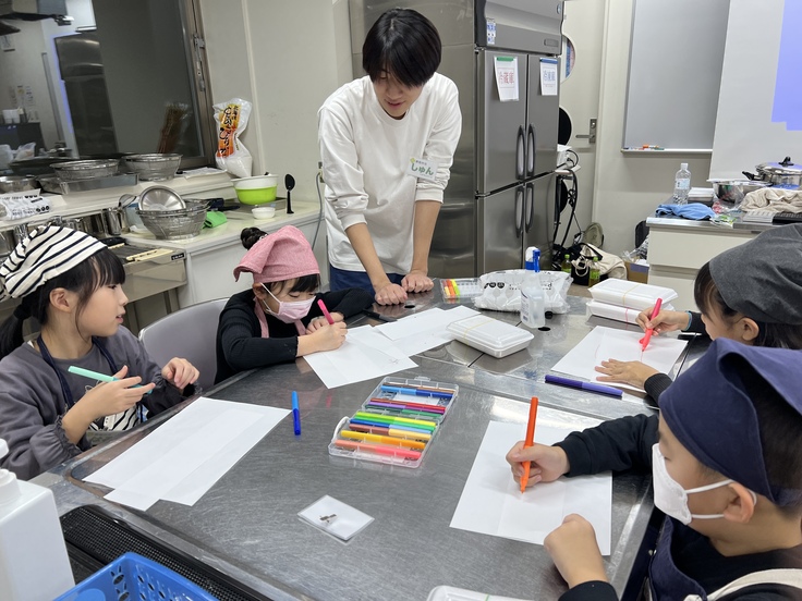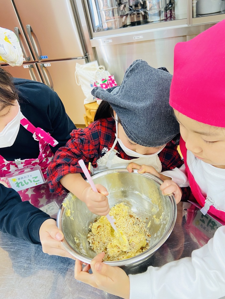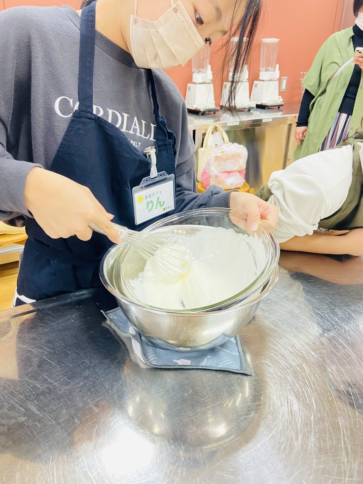 お菓子作りではなく「仕込み」として子どもたちに営業時に使うデザートの仕込みを行います。