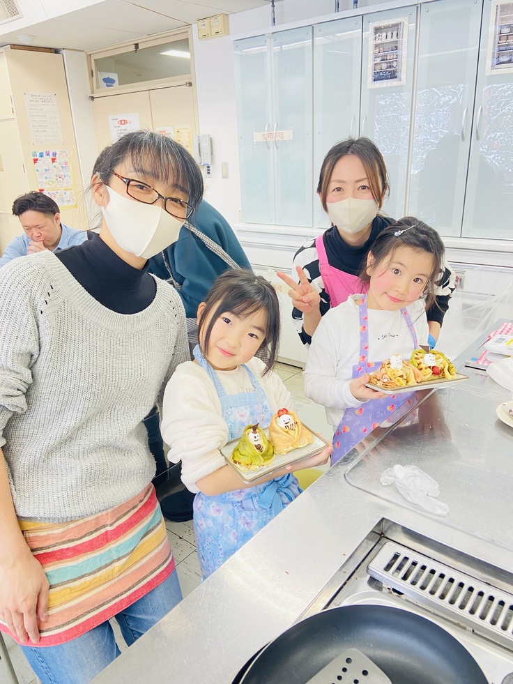 さて、1部と 2部につきましてはひな祭りということもあり、お菓子作りにはクレープを使った「お雛様 + お代理様」を子どもたちそして、保護者様がそれぞれ協力し合って完成させる。という体験イベントを開催。