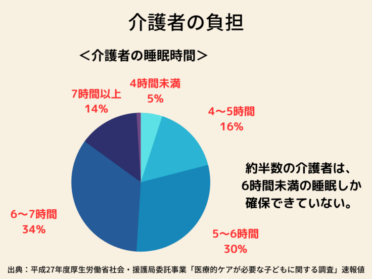 上の図を見ると在宅生活での介護者の負担感や睡眠時間がわかり、支援が必要なのは明らかです。