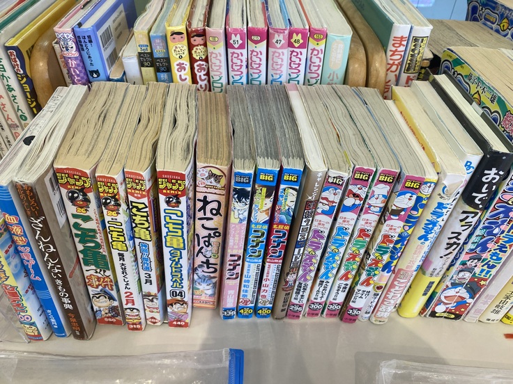 ↑少し大きな子たち向けのマンガや本は絵本と比べ種類が少なく劣化も目立つ様子。