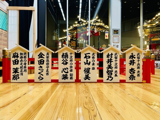 子供役者の役名と名前を描いた入山木札が出来上がりました!5/13(金)の午前中に行うお練りで使用します!