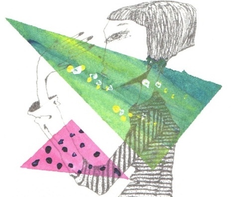(「鋭いオンナノコ」上野倫可【インク、アクリル絵具/100×148】)