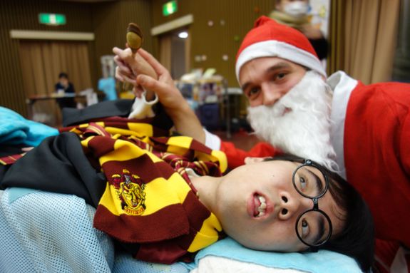 (クリスマス会で外国人スタッフと。2001年からスタートした外国人スタッフ採用は今年で15年目。実に延べ160名以上の外国人スタッフが、私たちと活動を共にしてきました。それは、活動を終えてそれぞれの母国へ帰っていった彼等を通じた、私たちと「世界とのつながり」でもあるのです。)
