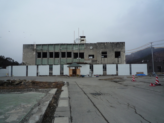今日は大槌町の様子をご紹介します。大槌町は釜石市の北に隣接する海沿いの町です。庁舎の倒壊を危惧し、東日本大震災発災直後からは役場前の広場に災害対策本部を置こうとしていた大槌町。ここでは死者・行方不明者合わせて1,284人の方が犠牲になりました。さらには、当時の町長や役場職員も40人が犠牲になりました。