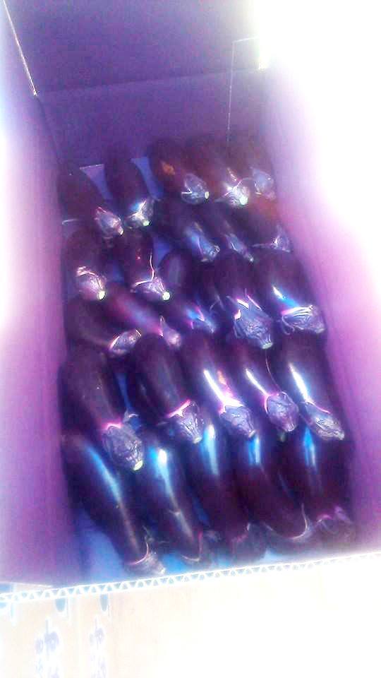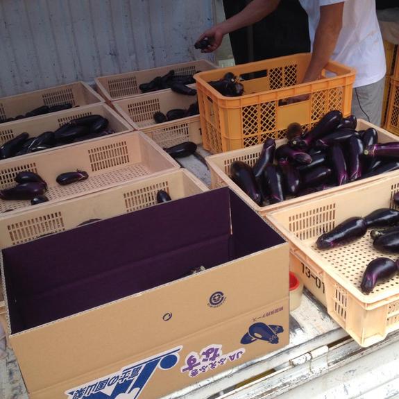 この日の作業はこれで終了しました。この日大雨のため、自分は帰宅を諦め、もう一泊することに。次の日の朝にはナスの収穫をさせて頂き、ナスの検品、梱包、出荷作業へと移ります。