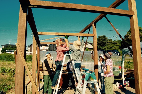 マルシェ小屋はワークショップに参加者される方々と共に造り上げていきます。