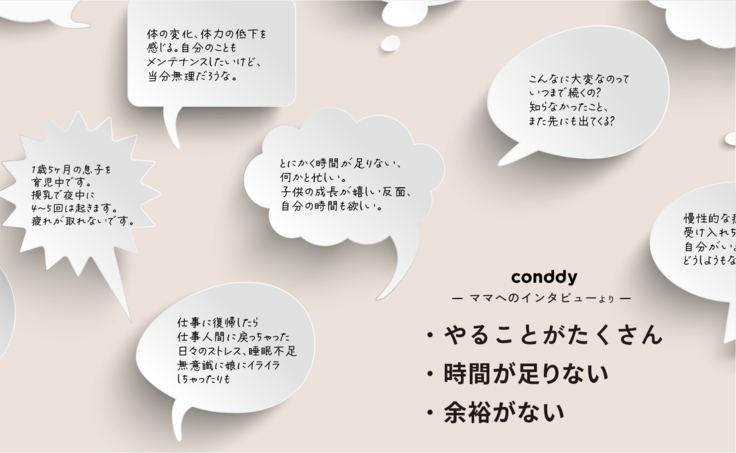 わたしたちconddyは「いいコンディションのママを、もっと。」をミッションに、2021年11月1日に設立しました。