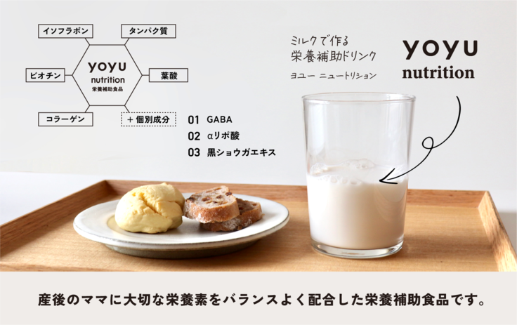 ①「産後の悩みにアプローチする栄養補助ドリンクyoyu nutrition」