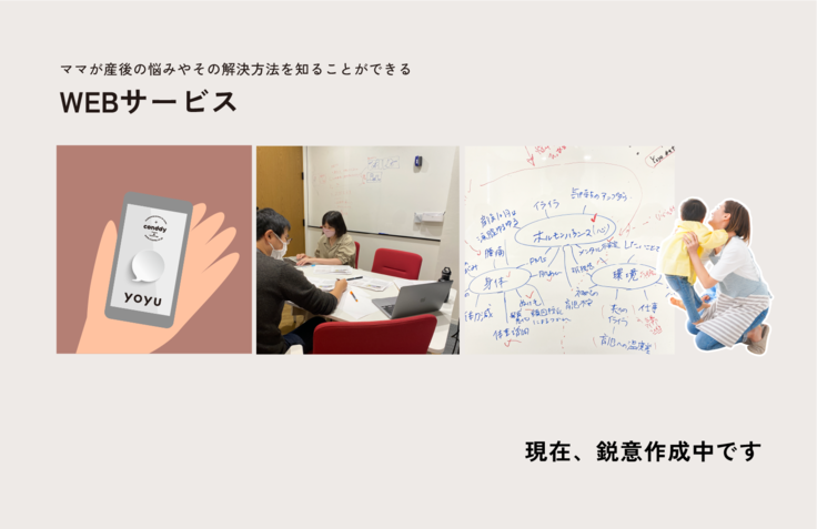 産後のママが、サイト、SNS、LINEを通じて、産後の悩みや解決方法を知り、共有できるものを開発・提供予定です。例えば、「生活の中での工夫を知りたい」に先輩ママが応える等のものを考えています。