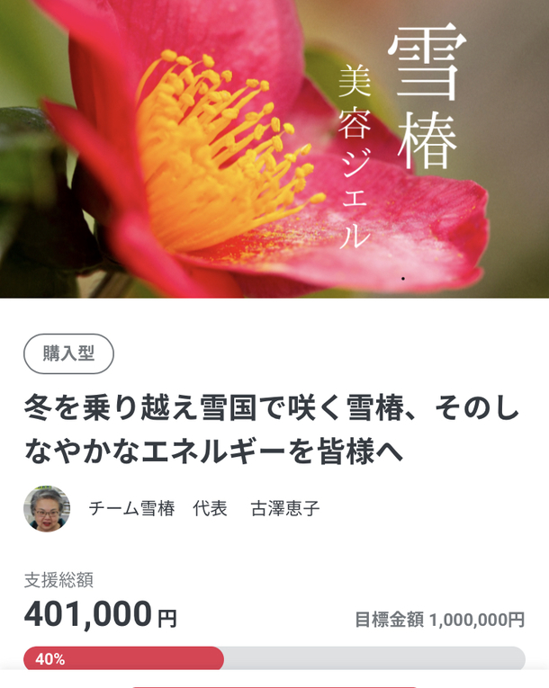 ※クラウドファンディングでご支援頂いた方に、いち早く雪椿美容ジェルをお届けします。