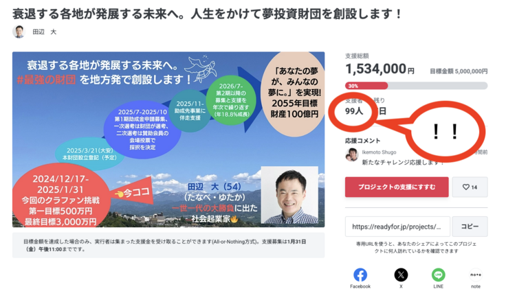 【全国のキリ番ファンの皆様に大切なお知らせ】あなたのご参加で、100人の支援者に到達します!