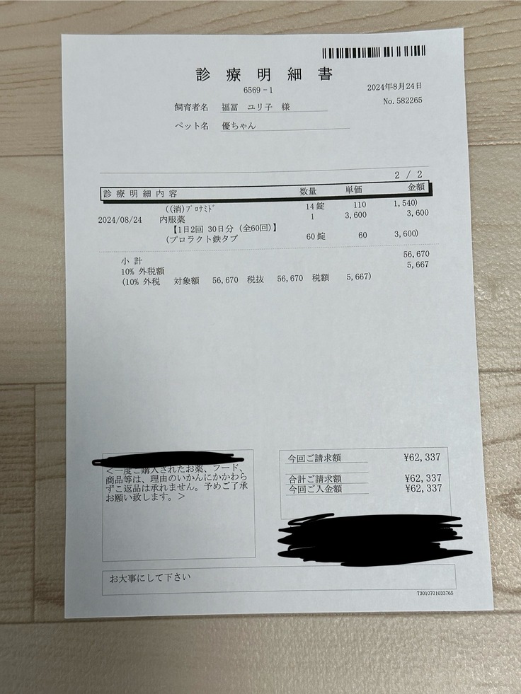 今回の検査とお薬にかかった費用は、62,337円でした!