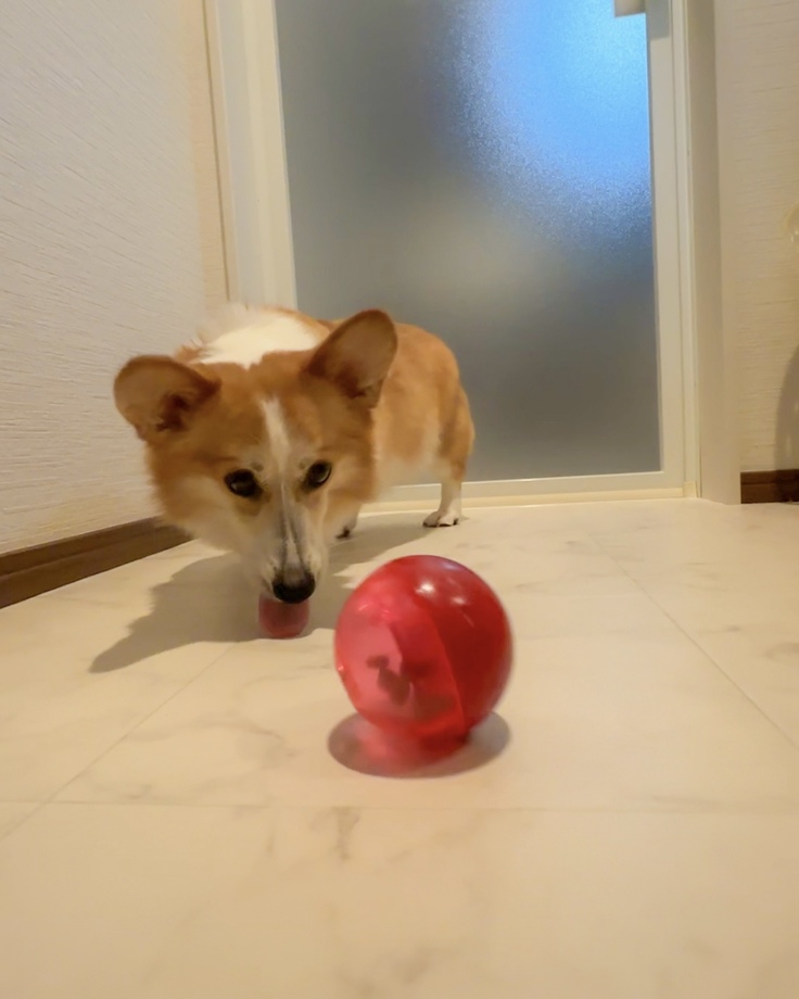 歩かせるのも兼ねて気分転換にご飯を知育トイであげてます😅