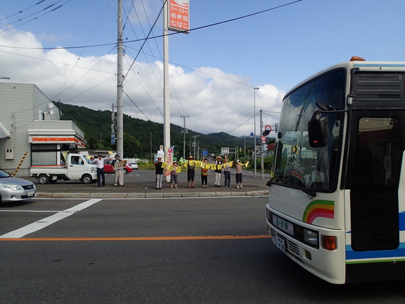 夕張市に入ってきてすぐにある滝ノ上地区のみなさん、紅葉山地区のみなさんが黄色いハンカチを振って