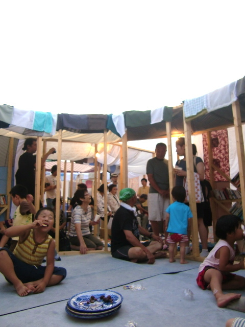 気温が少し低い夕張、地元の子ども達も沢山いたせいと、まるで秘密基地のような作品にテンションがUP☆☆