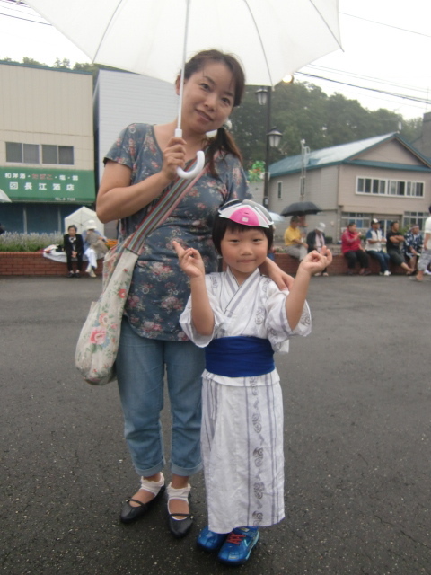 夕張和太鼓『竜花』を真剣に観察。福島に帰ったら、太鼓を習うそう。