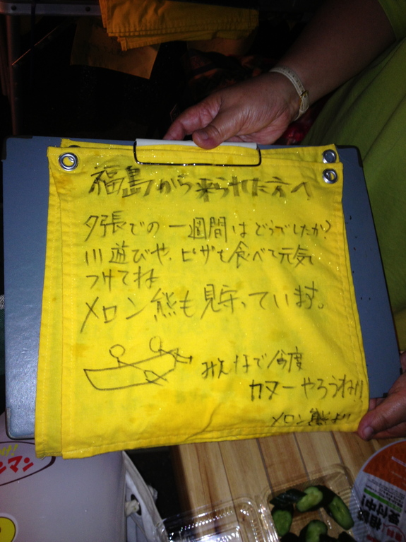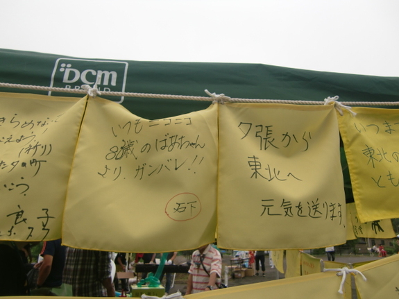 屋台の中に設けられた夢再生館のブースは、今年も支援金に協力してくださった方からの黄色いハンカチで賑やかに飾られました。