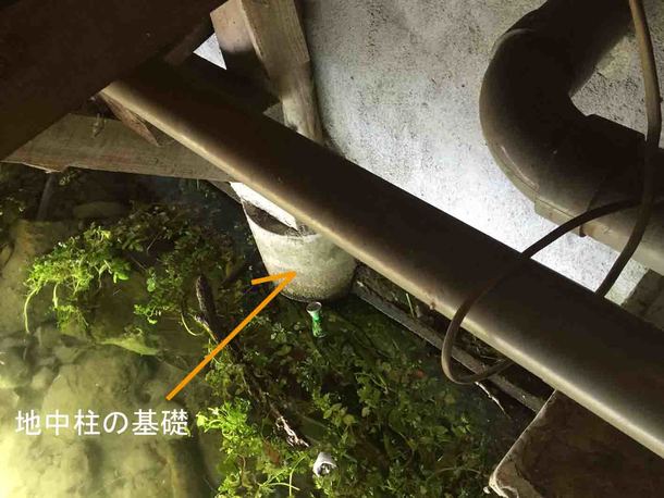 ②水中柱の基礎を復旧し、建物を正常な状態に戻します。