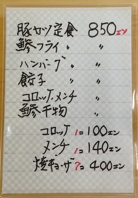 食事処かとうのメニュー。豚カツ定食と鯵フライ定食から始めましたが、既にこんなにメニューが増えました。どれも加藤さんがこれまでつくってきたお惣菜を活用した美味しい一品です。