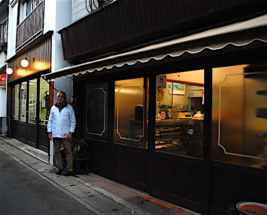⬇️加藤功さんと正面入口(湯元通り側) 左:食事処 右:精肉店