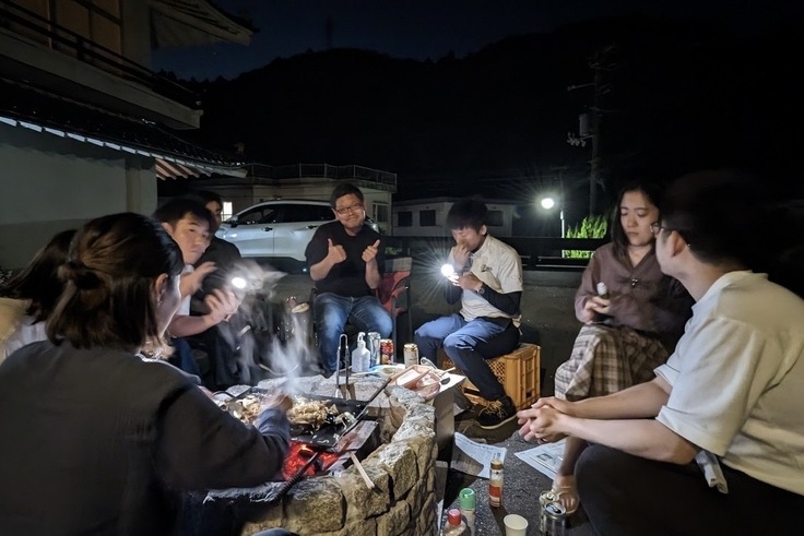 コンサート後は、出演者とお客様数名と、遊観の庭先でBBQを囲みながら、夜中まで語り合い、楽しい時間となりました。