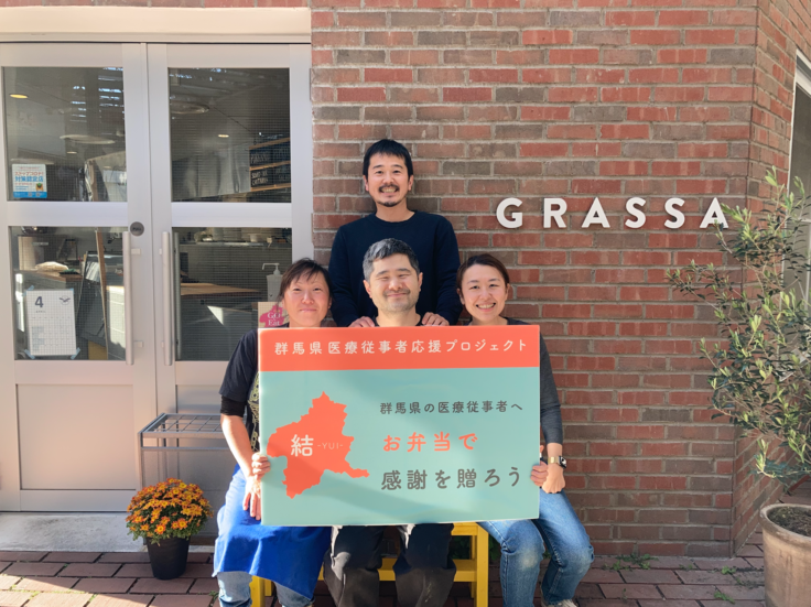 雷作の両隣にいるのは、月に一度主宰している「前橋タイニーマーケット」はじめお世話になっている農家のケイコさんと、農業カメラマンとして大活躍中の網野さん(所属はカネコ種苗さん)。お二人は本業のかたわら、GRASSAファミリーの一員としてお店を支えてくれており、今回の結プロジェクトにもご支援をいただきました。本当にいつもありがとうございます。