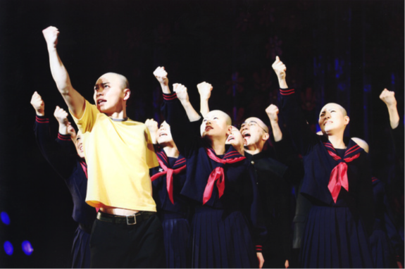 この「友情~秋桜のバラード~」のストーリーを紹介します。主人公は、島崎あゆみという女子中学生です。彼女は、コスモスの花が咲く頃、白血病治療のため北海道から東京へ転校をしてきました。しかし、治療が進み薬の副作用から髪の毛が抜け落ち、落ち込む彼女を見たクラスメイトは、驚きの行動を起こします。なんと、クラスメイト全員が丸坊主になったのです。そして、彼女に向かって「これでみんな同じだよ」と言葉をかけ、落ち込む友達を何とか励まそうとします。これにより、主人公あゆみとクラスメイトたちの間に、真の“ 友情 ”が生まれたのです。そして、落ち込んでいたはずの彼女はいつしか、 “ 生きたい! 大人になるまで生きたい!“と強く願うようになるのです。感動のストーリーに加え、さらに魅力なのはこの舞台のキャストは、男女問わず全員が本当に坊主頭になって、公演に臨んでいるというところです。