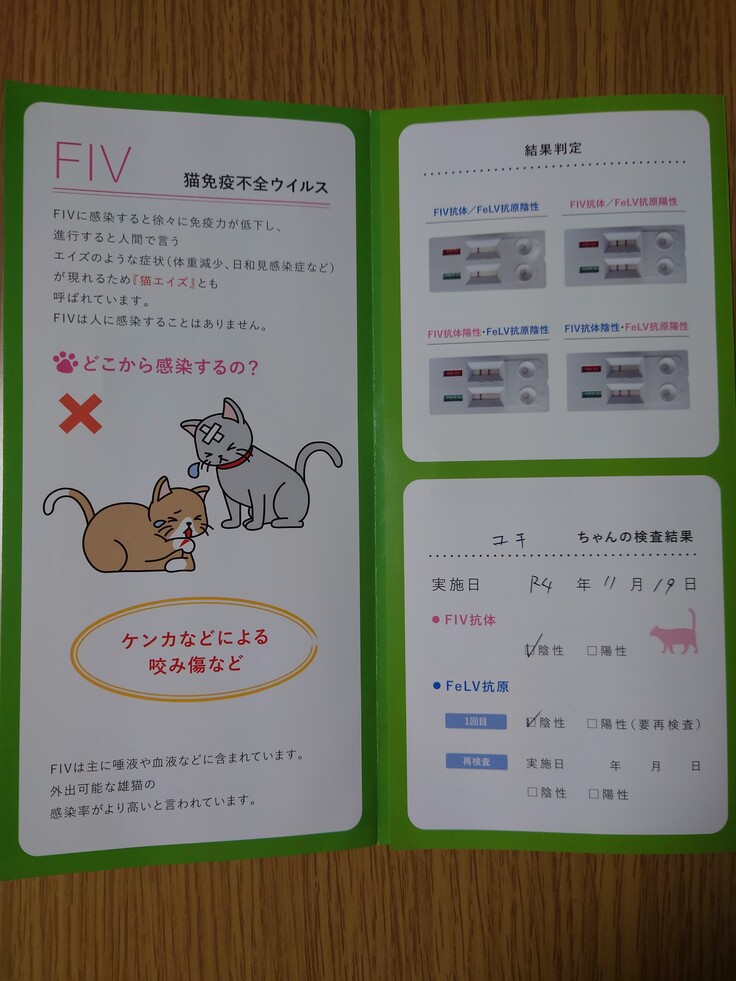 11/11無事に保護され安堵するもただ気になることは一つ、ユキの病状でした。また保護主様、SNS上でご尽力頂いた方々のお陰等、縁あってユキの里親になり最初の病院で初期医療であるウィルス検査、血液検査をしました。