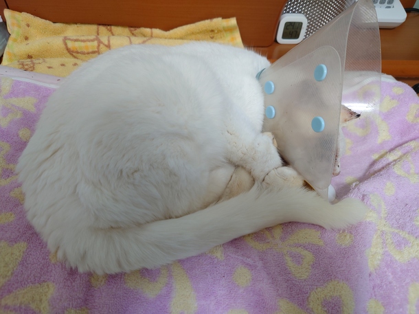 いつもツチノコスタイル寝が多いユキですが、横になり丸くなって寝ている時間が最長でした。